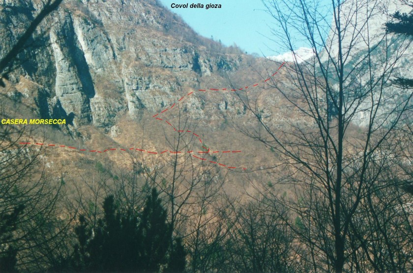 Il sentiero originale (franato) percorreva quella sotto, ma e'