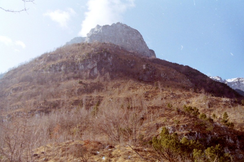 Lo Spiìgol Sec visto salendo per la Morsecca (si nota il ripido sentierino a zig-zag)