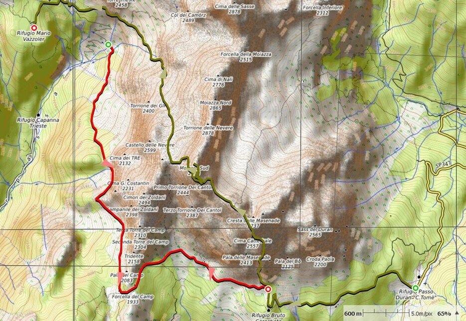 Dal rif. Coldai per rif. Tissi , Vazzoler, Van delle Sasse