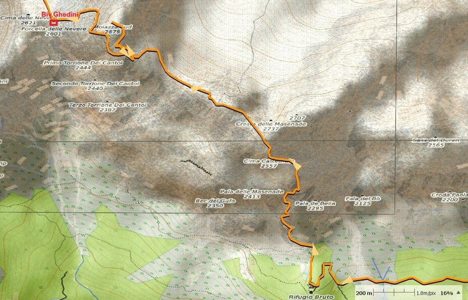 Traccia GPS riportata su 'Open Street Map' Percorso alpinistico richiedente la conoscenza delle tecniche