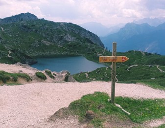 Si prosegue dal rifugio per sentiero (nr.560) molto largo e pressochè pianeggiante verso ovest, il sentiero poi si impenna per raggiungere la forc. Coldai sita a mt.2191. Bellissimo panorama sul lago sottostante. Ore 0.15.