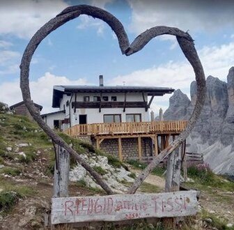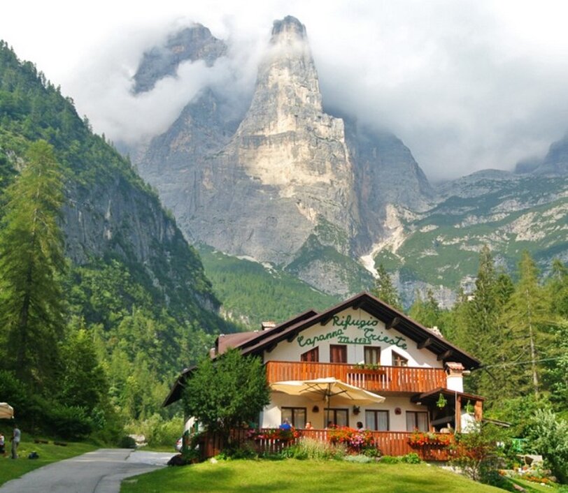 l Rifugio Capanna Trieste con sfondo la Torre Trieste (si mangia benissimo...)