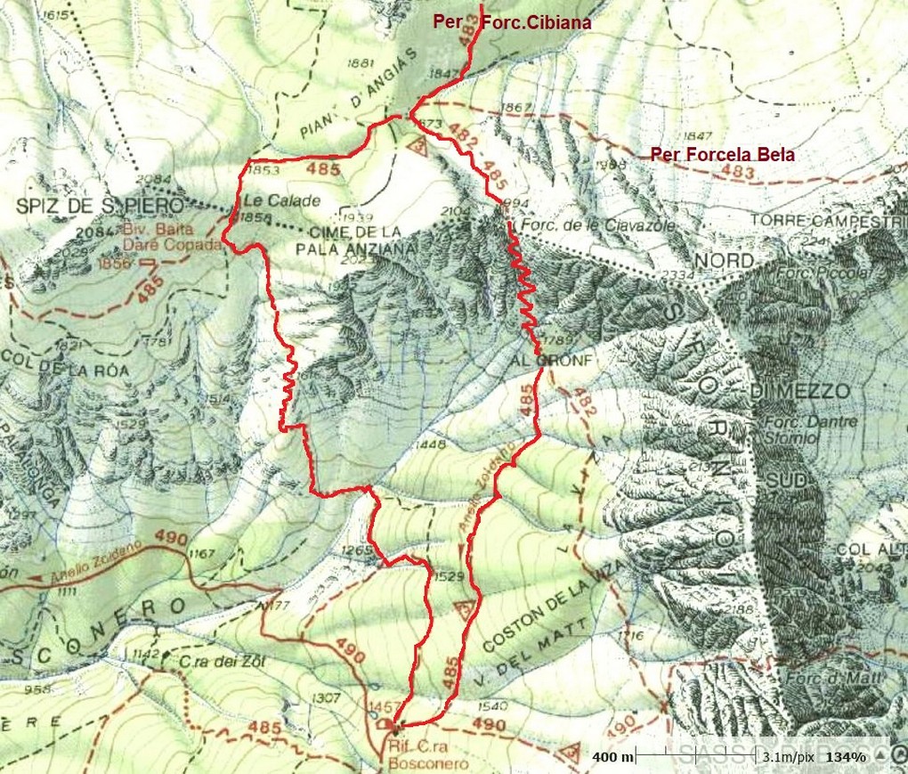 NB: L'attuale Forzèla Bela di Sfornioi fino al 1865 veniva chiamata 'Forcella di Valbona'
