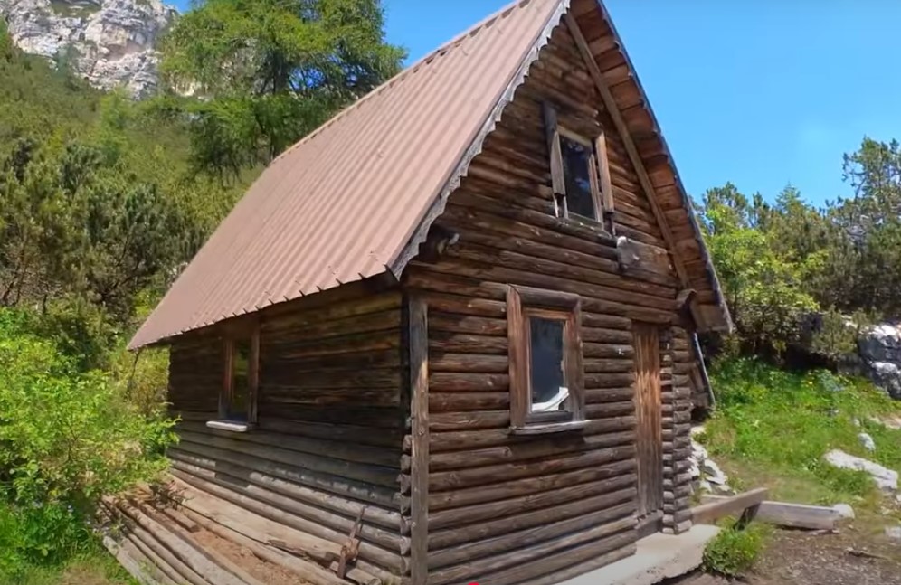 Il Bivacco Casera Campestrin sfondo le cime di Sfornioi