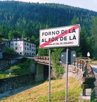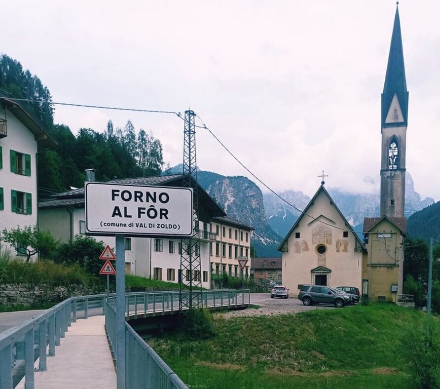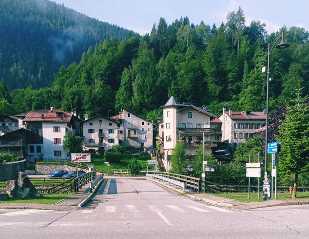 Il ponte da oltrepassare frontalmente alla fermata del Bus a FORNO DI ZOLDO