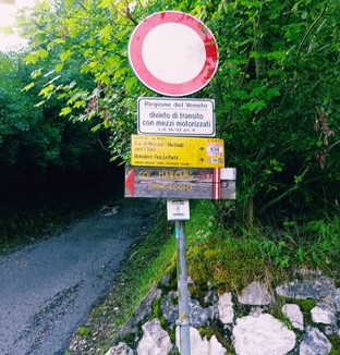 Dopo il ponticello sulla foto si gira a sx e quindi su diritti a dx per la strada con divieto di transito ed indicazioni CAI nr.534