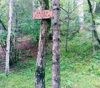 Ora il percorso e' obbligato in quanto al di fuori del sentiero vi sono le mughe e si cala ancora oltrepassando con un passo in salita la costa boscosa che separa il canalone della forcella dall'impluvio dove si erge il bivacco Campestrin.