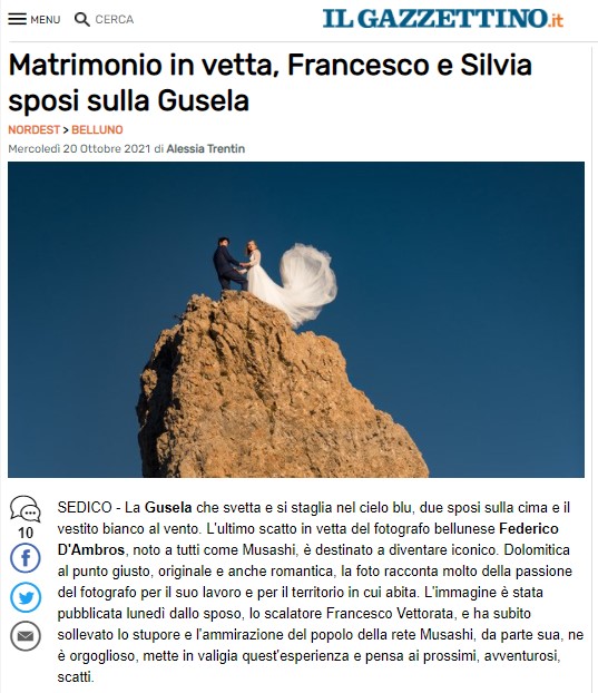 '...Seriamente infortunato sulla Gusèla è Gabriele Franceschini, nota guida alpina feltrina (Pelmo d’oro alla carriera 2004), a lungo accompagnatore di fiducia di re Leopoldo del Belgio e Dino Buzzati: brutta frattura esposta ad una gamba. Quel giorno è in corso accanto al rifugio Settimo Alpini un affollato raduno per l’inaugurazione del sentiero attrezzato Gianangelo Sperti, circostanza che consente l’immediata attivazione dei soccorsi. C’è chi sale in fretta la parete, raggiunge il ferito e incomincia la lunga calata sul fronte opposto verso la Val Cordevole e chi intanto si rivolge all’aeroporto di Belluno che da settimane è campo base di automezzi e velivoli impegnati nelle riprese del film Von Ryan Express (regista Mark Robson, con Frank Sinatra e Raffaella Carrà).