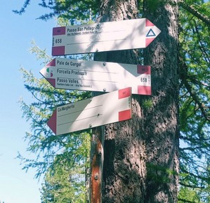 Dal Passo San Pellegrino si percorre la statale verso Falcade per circa cento metri, sino ad individuare il sentiero nr.658 (mt.1907) che attraversa a sud per due ponticelli in legno molto evidenti superando il recinto elettrico per il bestiame. Attraversata per mulattiera la zona paludosa, il percorso (segnaletica) si infila nel bosco con media pendenza ed attraversa alto passando sotto alla funivia del Col Margherita. Il percorso è comune con quello della Alta Via delle Dolomiti nr.2