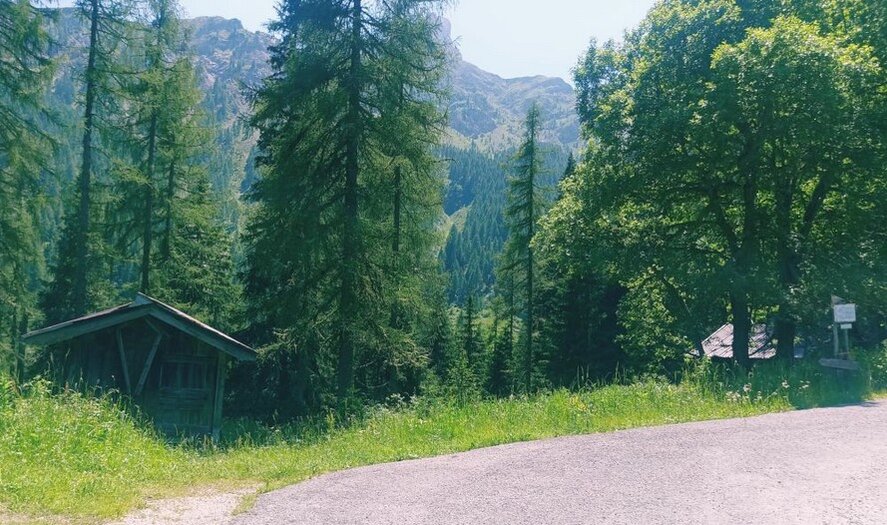 Si prende la mulattiera per Malga Stia (indicazioni) ed usciti dall'abitato si prosegue per pista forestale che si abbandona quasi subito per prendere il sentiero CAI-754 che a sinistra porta a Malga Stia ed alle Farangole.